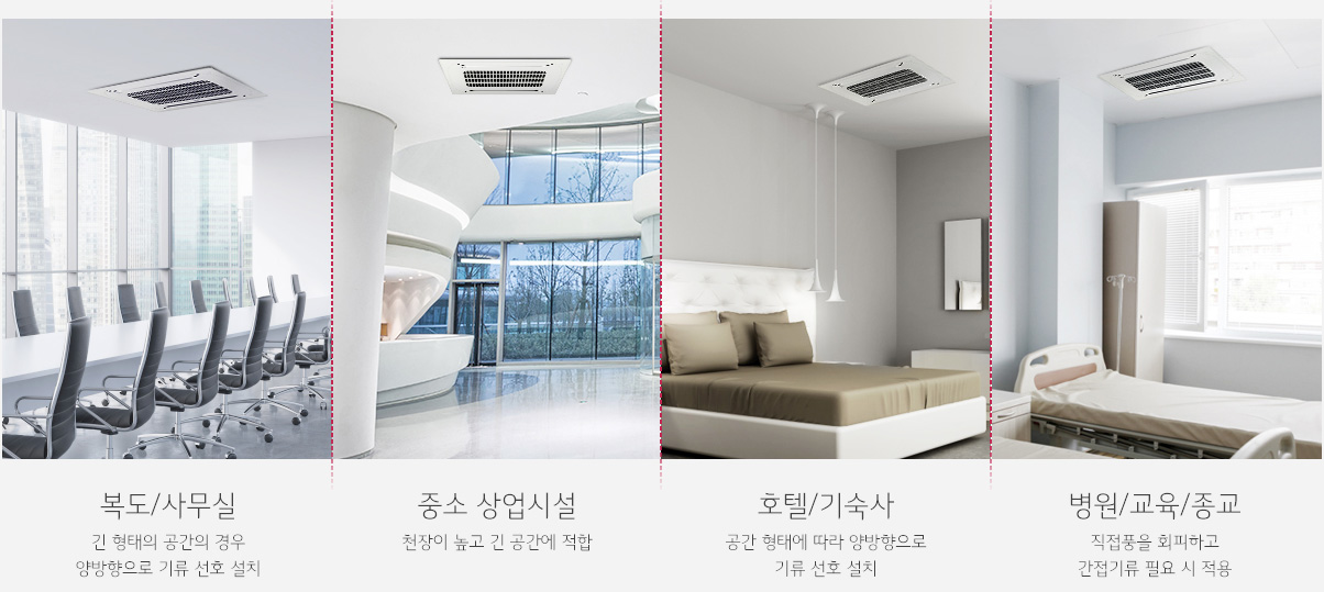 복도/사무실, 호텔/기숙사, 병원/교육/종교, 중소 상업시설 등 다양한 공간에 적용 가능합니다.