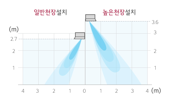 실내기 팬 위상제어 알고리즘 채용으로 천장 높이에 따라 바람의 세기를 자유롭게 조절할 수 있습니다.