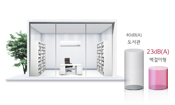 휘센의 3중 차음설계로 귀를 바짝 대어야 들릴 정도의 소리로 잠잘 때나 독서를 할 때에도 소리를 거의 느낄 수 없는 저소음 운전을 실현하였습니다.