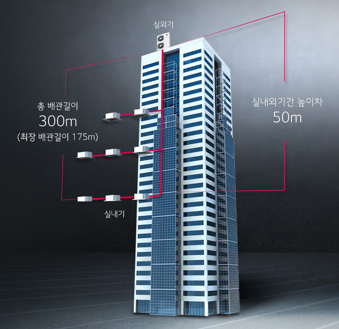 세계 최고 수준의 배관 길이 및 설치 허용범위가 크기 때문에 매우 다양한 시스템 설계가 가능합니다.