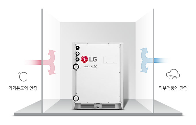실외기실 위치선정이 자유롭고, 공기 흡토출을 위한 루버가 필요없어 깔끔하고 격조 높은 건물외관을 연출할 수 있습니다. * 루버 : 실외기실 환기를 위한 그릴창