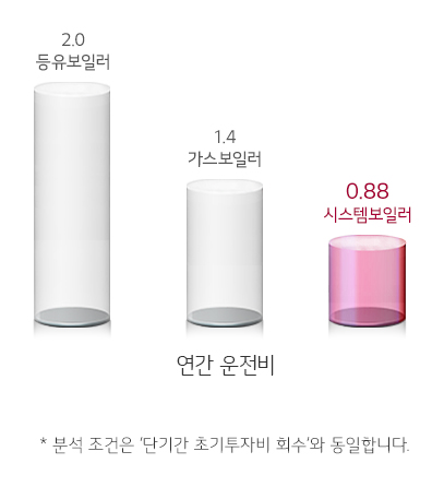 기존 보일러 시스템 대비 더욱 저렴한 운전비용으로
